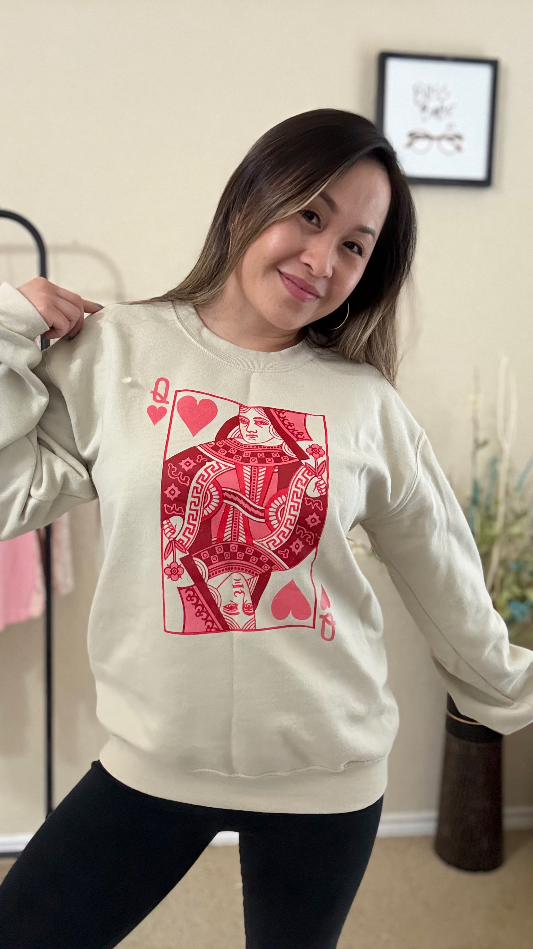 Queen of Hearts Graphic Crewneck Sweatshirt – Cozy Cotton Blend